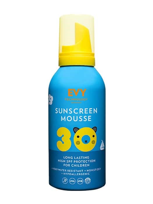 Αντηλιακή μους μακράς διαρκείας με υψηλό δείκτη αντηλιακής προστασίας για όλους τους τύπους δέρματος, κατάλληλη για παιδιά.